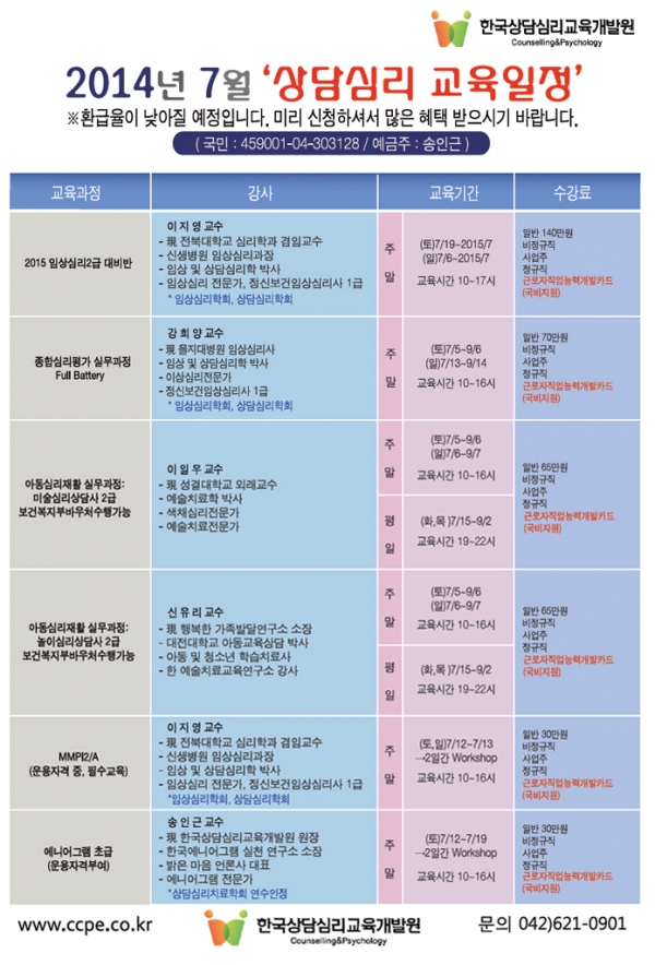 [국비지원] 대전 상담심리교육개발원 7월 교육안내
